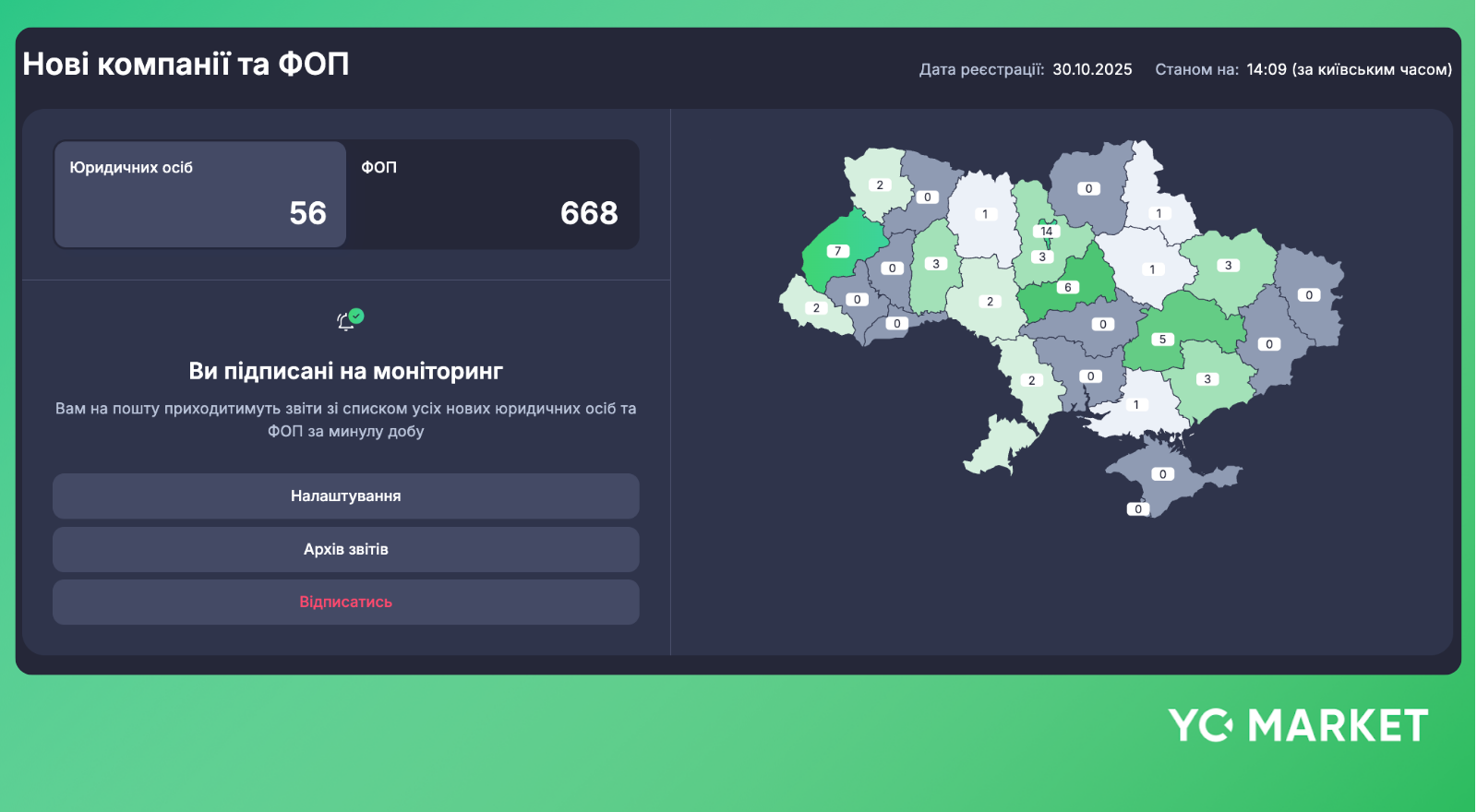 Дані в YC.Market оновлюються щодня з офіційних українських реєстрів і джерел.