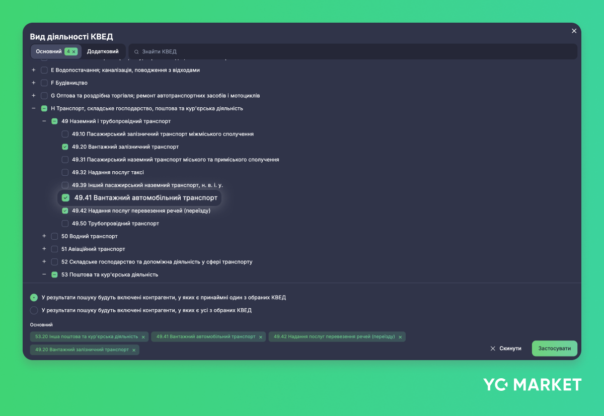 В YC.Market це можна зробити за кілька хвилин — завдяки даним з відкритих реєстрів та аналітичним показникам системи.